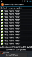 Не делайте бекапов этой программы (например с помощью Titanium Backup), я добавлю возможность сохранения настроек позже, а пока что ваши настройки могут перемешаться. То же самое и для удаления программ: перед удалением не забудьте отключить пользовательские настройки приложения в GLTools.За законность устанавливаемых плагинов несет ответственность только пользователь.