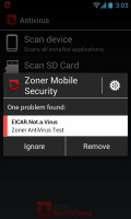Вы можете проверить антивирусные приложения содержащие тестовый файл EICAR используя: Zoner AntiVirus Test