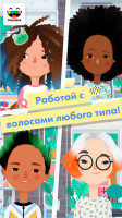 Волосы в Toca Hair Salon 3 выглядят и ведут себя совсем как настоящие! Можно создавать прически с шелковистыми прямыми волосами, упругими локонами, мелкими кудряшками и, впервые в серии Toca Hair Salon, с африканскими волосами! На этих супер-кудрявых волосах можно делать пушистые афро-прически и другие укладки в естественном стиле.ВЕЛИКОЛЕПНЫЕ ПАРИКМАХЕРСКИЕ ИНСТРУМЕНТЫ