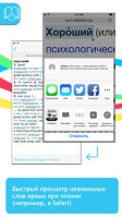 • Новинка для iOS 8! Добавлена возможность быстрого перевода при чтении в Safari. Для этого выделите любой текст и отправьте его в Slovoed с помощью кнопки «Поделиться». Пожалуйста, активируйте Slovoed в качестве расширения в Safari.