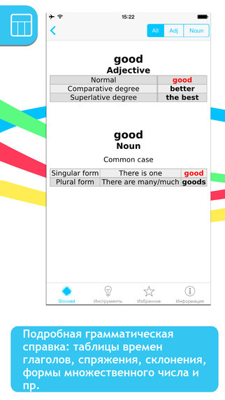 • Просмотр незнакомых слов из словарной статьи через контекстное меню.СОВЕРШЕНСТВУЙТЕ ЗНАНИЯ ЯЗЫКА КАЖДЫЙ ДЕНЬ