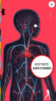 • Шесть интерактивных, анимированных слоев для изучения человеческого скелета, мышц, а также нервной, сердечно-сосудистой, дыхательной и пищеварительной систем (мочеполовая система доступна в качестве внутренней покупки в родительском разделе).