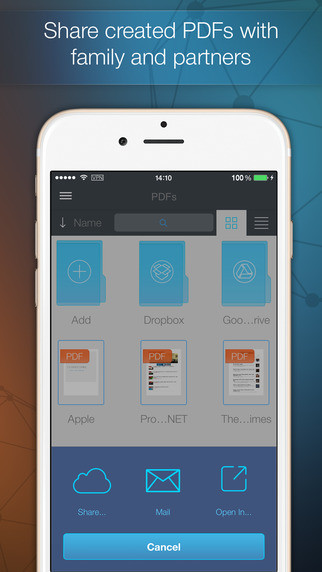 Если Вы хотите поделиться PDF документами, Вы можете загрузить их в общую папку на Dropbox или Google Drive, отправить их по электронной почте или напечатать на принтере с поддержкой AirPrint.