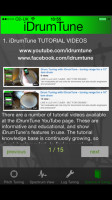 iDrumTune - первая и самая интеллектуальная система для анализа звуков барабана и пощи в настройке. iDrumTune предоставляет Вам измерение частоты вибрации кожи барабана, таким же образом как guitar tuner, который измеряет частоту последовательности вибрации гитары. В Настраивающем режиме просто держите iPhone по центру барабана, на расстоянии приблизительно в 4-6 дюймов, и ударьте барабан по центру.