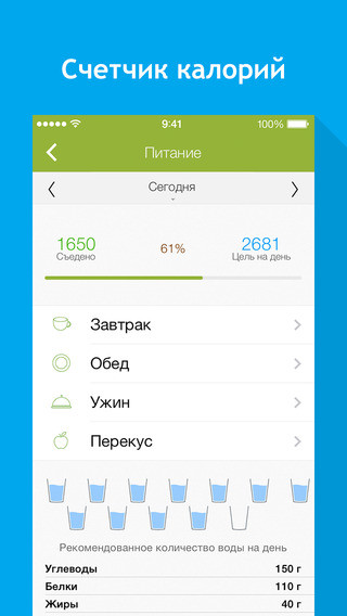 • Fitness – это единственное приложение в App Store, содержащее точный счетчик калорий и информацию по продуктам питания, а также базу данных из более чем 300 000 продуктов и рецептов!