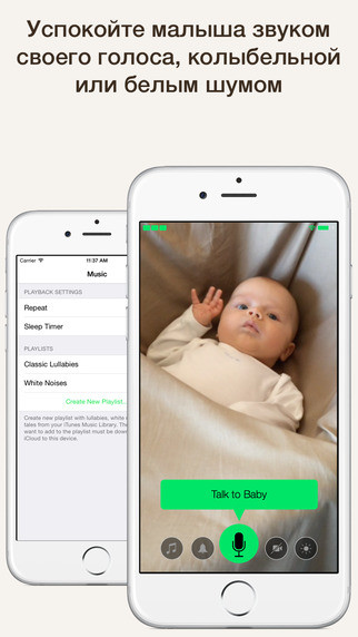 Используйте включенный в приложение набор самых популярных колыбельных и белых шумов. Удаленно управляйте громкостью звука, воспроизведением и таймером автоматического отключения.СОЗДАНИЕ СОБСТВЕННЫХ ПЛЕЙЛИСТОВ