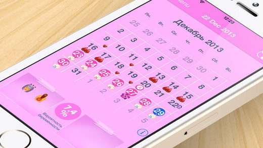 • персональный календарь менструального цикла позволяет вести дневник, создавать ежедневные записи с возможностью отмечать до 23 физиологических симптомов состояния и настроения. К тому же предусмотрена возможность обозначать символами в виде сердечек дни интимных отношений. Теперь ничего не будет упущено!