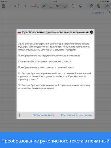 • Преобразование рукописного текста в печатный (функция работает на 52 языках).