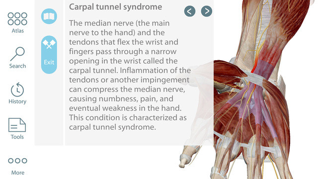 - Тысячи 3D-изображений мышц, костей, связок, синовиальных сумок, нервов и артерий в нормальном состоянии. Модели изображений включают определения, произношение терминов, опознавательные точки костей, места крепления мышц, иннервацию и кровоснабжение.