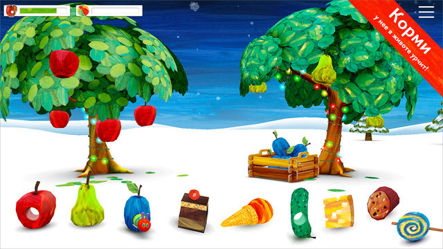 Полюбившийся читателям персонаж книги Эрика Карла «Очень голодная гусеница» (The Very Hungry Caterpillar™) за 45 с лишним лет покорил миллионы детских сердец во всем мире. А сейчас эта симпатичная гусеница начинает жить своей жизнью в замечательном 3-D интерактивном приложении.