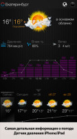 Стильный дизайн, оригинальные виджеты, 10-дневный и почасовой прогнозы от двух метеоагентств, барометр, графики, интерактивные карты погоды, живой индикатор температуры на домашнем экране, превратят Ваш iPhone или iPad в мощную погодную станцию!