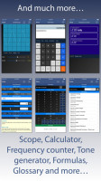 - Включает научный калькулятор, генератор частоты и осциллограф