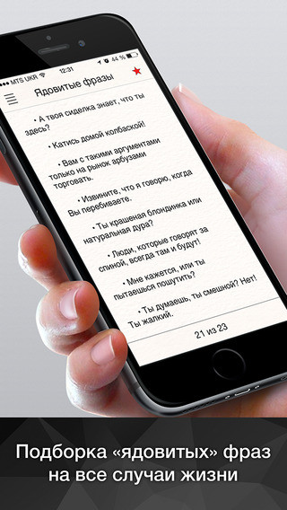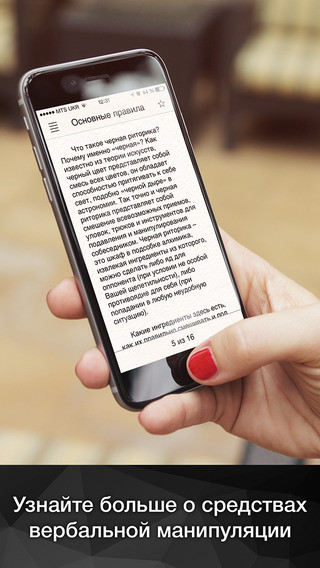 Это приложение поможет Вам; отличать, в каком контексте и при каких вопросах ваши аргументы ничего не значат или, наоборот, являются решающими; устранить противоречия в разговоре с собеседником; научитесь правильно использовать различные вербальные уловки; находчиво и элегантно устранить поставленные для Вас ловушки; в горячих спорах не терять головы и вести себя уверенно, выучите некоторые ядовитые фразы, а так же многое другое!