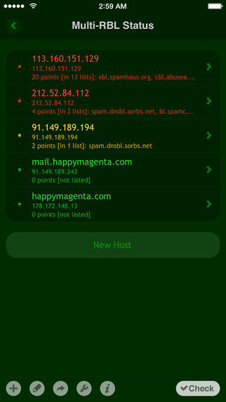 Система использует асинхронные алгоритмы для поисков DNSBL, который позволяет RBL Status работать действительно быстро. Только доли секунды требуются, чтобы проверить большое количество списков.