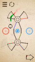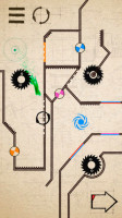 Ключевая идея головоломки это соответствие цветов. Загогулины могут беспрепятственно пройти через линию своего цвета, воронки засасывают только подходящий цвет, даже центры притяжения работают по этому принципу.