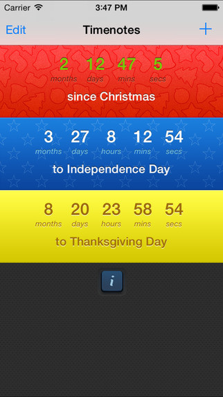Timenotes - приложение, которое позволяет Вам создавать напоминание, которое посчитает годы, дни, часы, минуты и секунды, до важного события или с его наступления.