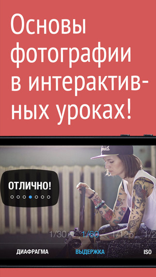 Мы проведем вас к знанию через разнообразные аспекты фотодела с помощью понятных любому упражнений. Приложение, как настоящий друг, укажет на ошибки и похвалит за успехи.