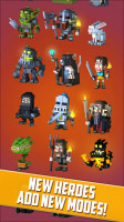 Игра Boxy Kingdom всё время меняется. В вашем распоряжении будет 34 играбельных героя, которых нужно сначала собрать. Каждый герой ведёт себя иначе, и у каждого из них свой характер — особенно у могучих легендарных героев.