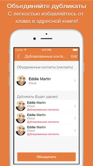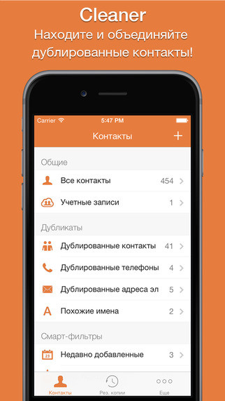 Cleaner легко поможет вам найти и объединить дублирующиеся контакты.