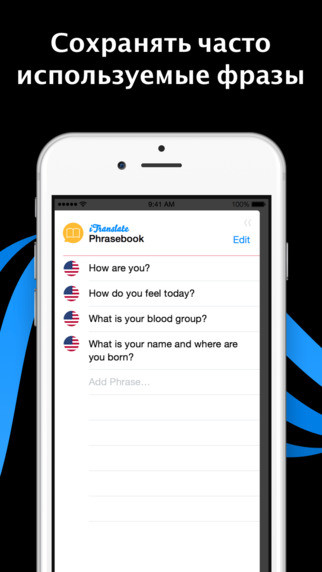 Теперь у вас есть возможность сохранять часто используемые фразы, выражения и вопросы, добавляя их в разговорник Phrasebook. Представьте, что вы врач, и к вам на прием часто приходят иностранные пациенты, которым вы задаете стандартные вопросы о самочувствии. А может быть, вы неутомимый путешественник и хотите иметь под рукой список расхожих фраз, которые могут понадобиться в разных странах?Занесите список нужных выражений во Phrasebook – и iTranslate Voice мгновенно переведет их на все поддерживаемые языки. Список синхронизируется с iCloud, поэтому вы можете быть уверены, что он не пропадет.