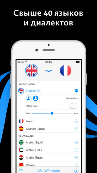 • Использовать AirTranslate для связи нескольких устройств и без проблем общаться с иностранцами.