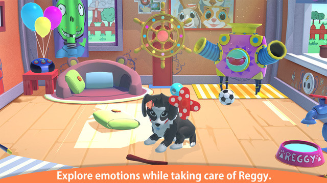 Присоединяйтесь к своему другу Регги в увлекательной открытой игре, которая обучает эмоциям. Сотни различных чувств, игрушек и сюрпризов в виде летающих сосисок и сражений воздушными шариками. Вы всегда можете помочь Регги, независимо от того, счастлива она, грустит, напугана или разозлилась! Вам обязательно понравится язык тела этой собаки и ее эмоции, а также полное отсутствие текстов и языковой информации. Эта игра получила множество наград и является ВЕСЕЛЫМ средством развития эмоционального интеллекта у детей.