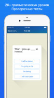 Также в программе Вы найдете грамматические уроки и тесты после каждого урока для проверки.
