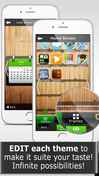- Изменить цвета, добавить фреймы, книжные полки и специальные эффекты на главный экранСоздавайте свои собственные уникальные темы оформления! С программой iTheme - секундное дело! Попробуйте сейчас. Это классные новые ощущения.