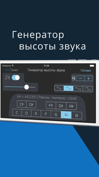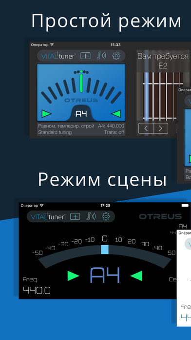 VITALtuner с самого начала разрабатывался как тюнер непревзойденного профессионального качества с высокой точностью настройки, которым вы могли бы легко пользоваться в любой ситуации. По-настоящему универсальный тюнер для всех инструментов с алгоритмом настройки включает огромный диапазон высот. От расширения низкого до (С) для контрабаса до высокого до для пикколо - вы найдете настройки на любой случай.РЕЖИМЫ НАСТРОЙКИ - СЛОВНО 4 ТЮНЕРА В 1