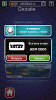 • Выбор желаемого режима из:Yatzy (Скандинавское - 5 кост), Макси Yatzy (6 кост) & Американское Yatzy (5 кост)