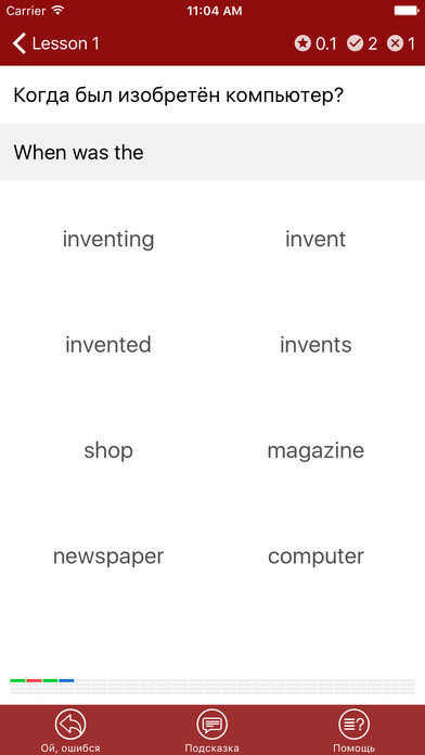 Из слов на экране вам нужно составить английский перевод.