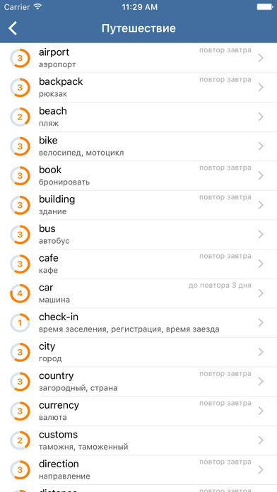 Если вы отвечаете правильно на все повторы, то слово переходит в группу "выученные" и больше не будет предлагаться.
