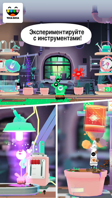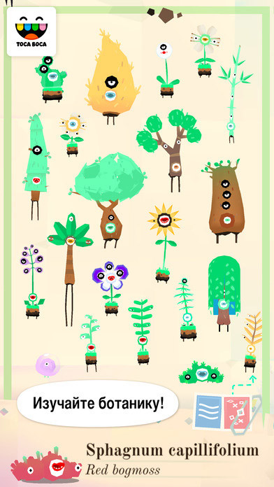Экспериментируйте с живыми растениями, выводите новые виды и наблюдайте за развитием их уникальных характеров. Соберите полную коллекцию растений! С Toca Lab: Plants наука становится причудливее и намного веселее!