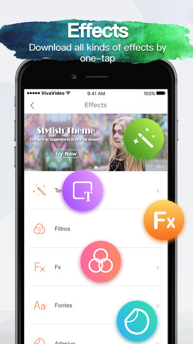 - Более 200 специальных эффектов, включая анимированные наклейки / Темы / Фильтры / FX / Тексты / переходов+ Экспорт и поделиться