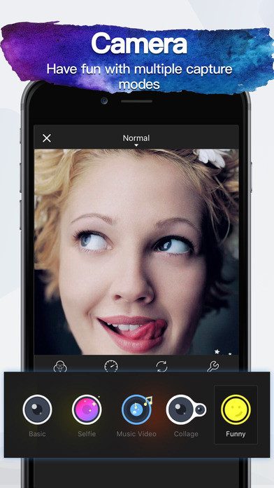 - Поддержка нескольких вариантов захвата: Basic / Селфи / FX / Смешные / Музыка Видео / Коллаж