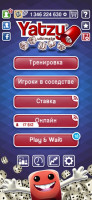 • Выбор желаемого режима из:Yatzy (Скандинавское - 5 кост), Макси Yatzy (6 кост) & Американское Yatzy (5 кост)