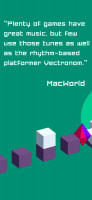 Vectronom – динамичная музыкальная игра на iOS, где вы будете решать трехмерные загадки под электронный саундтрек. В этой игре вы откроете для себя психоделический мир где вы испытаете на себе волны цвета и пройдете меняющийся геометрический путь. Приготовьтесь к гипнотическому электронному саундтреку и решайте многочисленные головоломки возникающие на вашем пути. Найдите свой путь в постоянно меняющимся мире и двигайтесь в такт музыке. Положитесь на свою ловкость пальцев и отличный музыкальный слух и пройдите все уровни игры стараясь достичь финиша. С каждым новым уровнем сложность игры будет увеличиваться и вам будет все сложнее двигаться дальше.