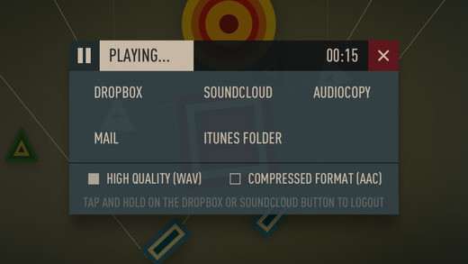 - Высококачественный или сжатый экспорт (Dropbox, SoundCloud, Почта, AudioCopy и iTunes)