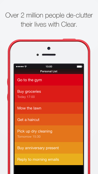 Более 2 миллионов человек с помощью приложения Clear делают свою жизнь проще - так почему бы и вам не упорядочить все в своей жизни, организовав повседневные дела?