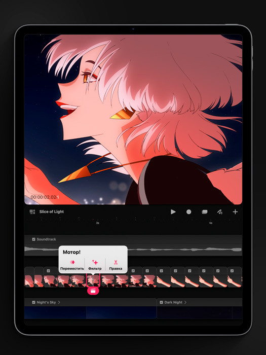 • Импорт видео и фото в форматах JPG, PNG, TGA, Procreate, MP4, GIF и ProRes